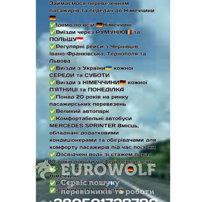 Здійснюємо регулярні пасажирські перевезення за маршрутом Чернівці - Німеччина.