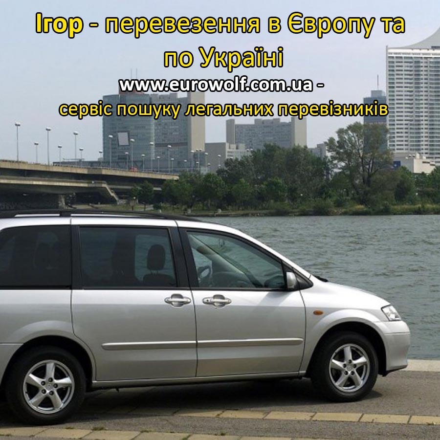 Автомобіль Mazda, беру до 3-х осіб з достатньо великим багажем та до 5-ти осіб з невеликим багажем. Також є можливість забрати групу осіб (до 5-ти людей) з Європи у будь-яке місто України.
