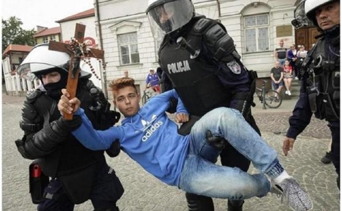 15-ти річний хлопець заблокував марш рівності ЛГБТ в місті Плок, Польща, тримаючи в руках церковний хрест, щоб «протистояти злодіям»